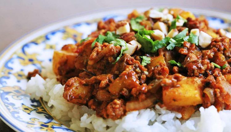 Picadillo is a spicy Latin American meat dish often served as a stuffing in chilies, taco filling, or served with rice.